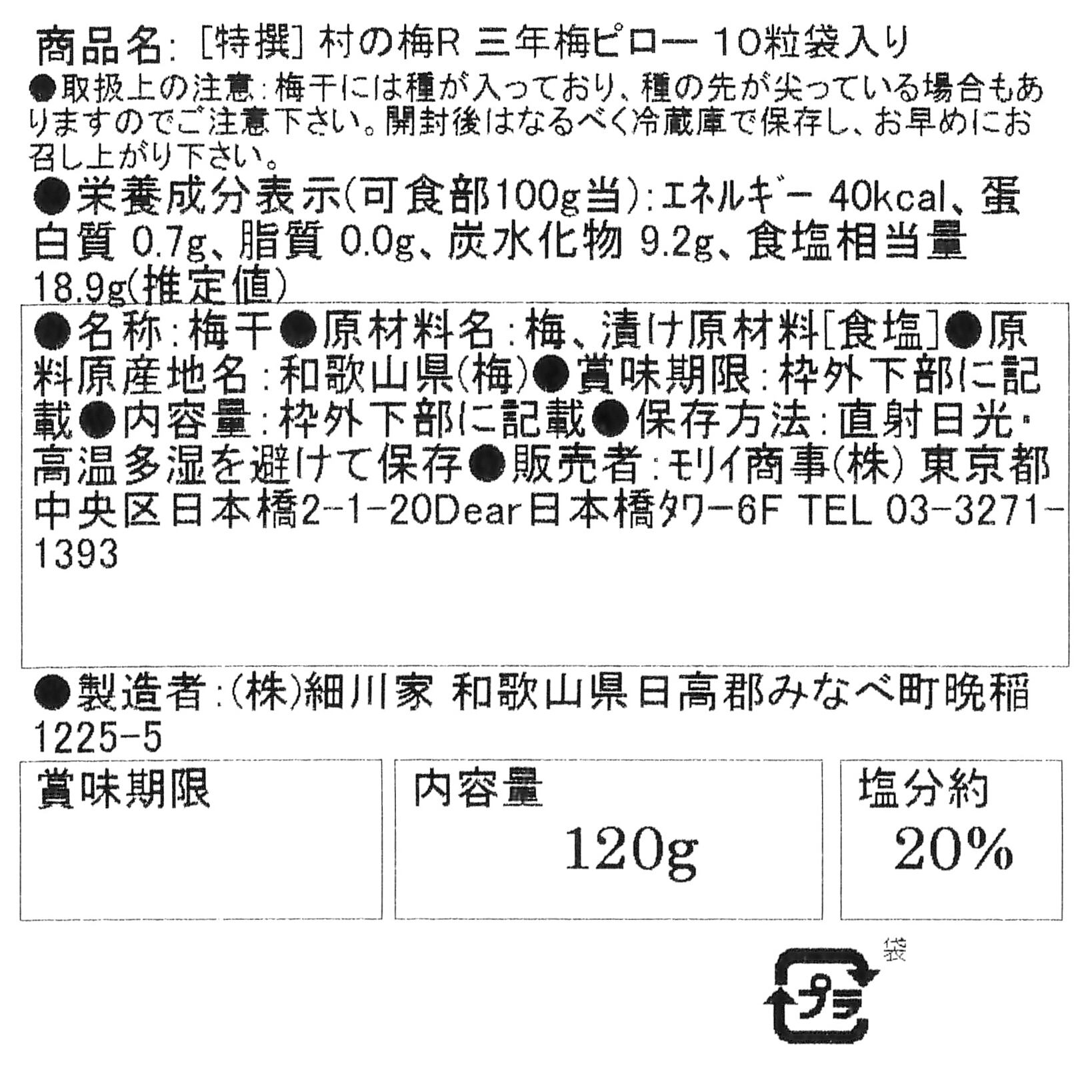 三年梅一粒梅10粒袋入