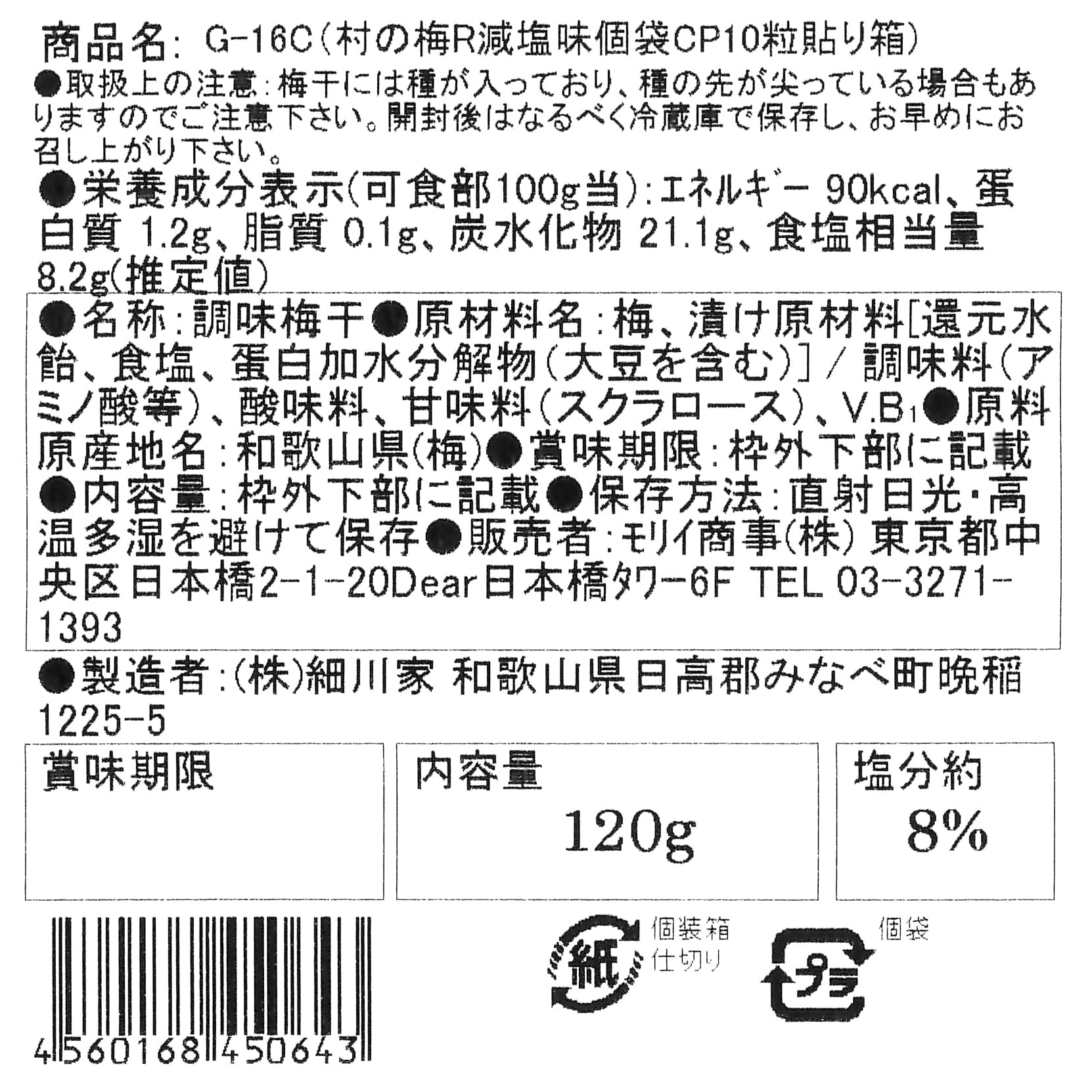 減塩味梅干(塩分約8%)を個包装にしたものの10粒箱入です。